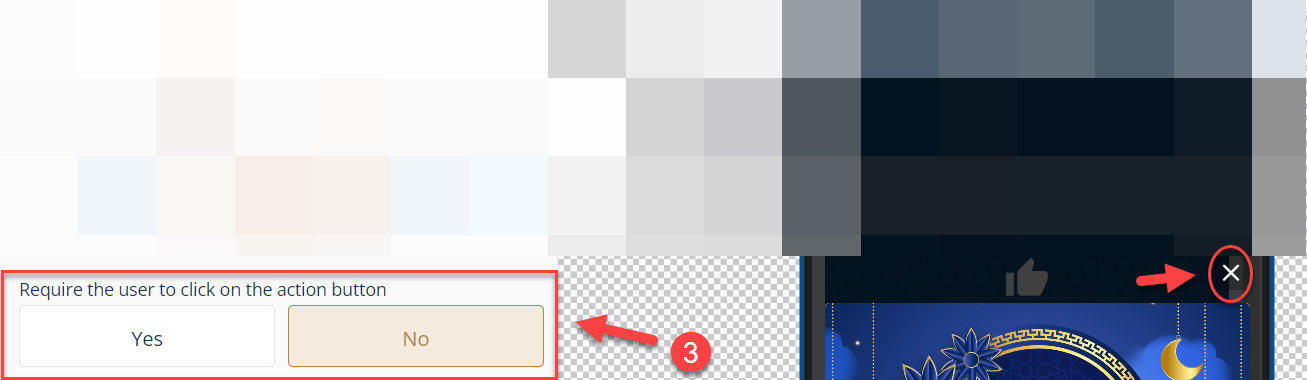 You can choose (Yes) if you want to require the user to do an action and (No) if you don't, and an X symbol will be visible at the top of the popup⁽³⁾