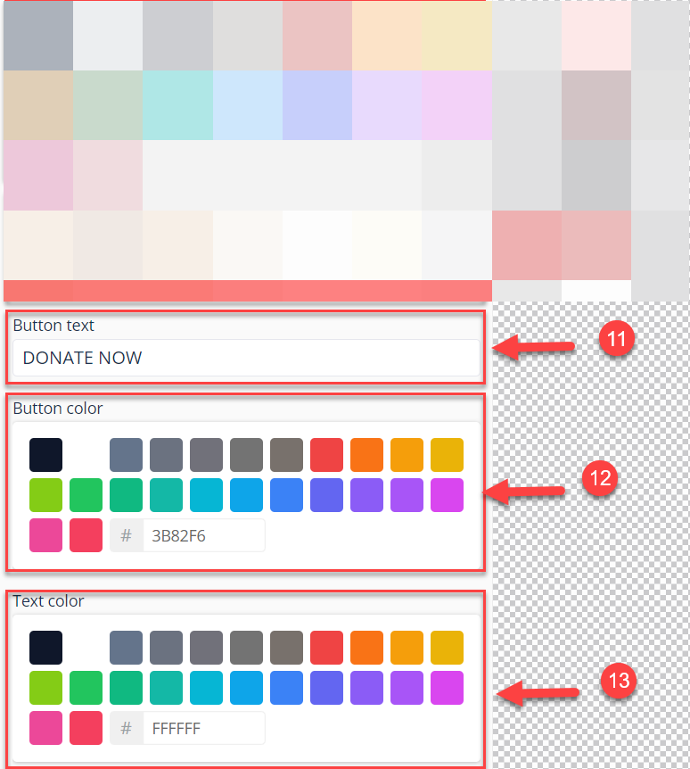 Enter the Button text⁽¹¹⁾, the Button color⁽¹²⁾, and the Color of the button's text⁽¹³⁾