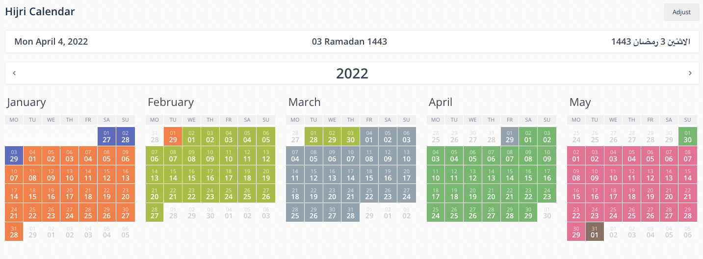 The Hijri date is calculated automatically, but you sometimes need to adjust the date if the calculation is not exact.