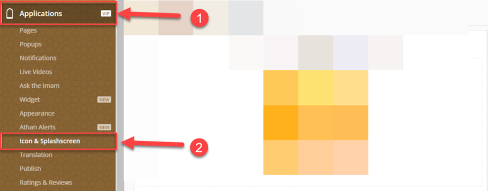 From the dashboard, go to Applications⁽¹⁾ then Icon & Splashscreen⁽²⁾