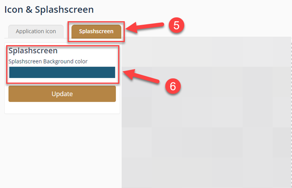 To change the Splash screen Background, go to Splash screen ⁽⁵⁾ and choose the Background color ⁽⁶⁾, then click update.