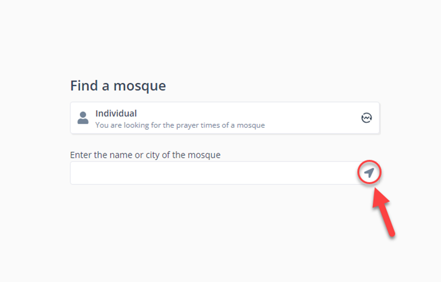 • Enter the city, and the mosque’s name or click on the location icon to add it automatically.