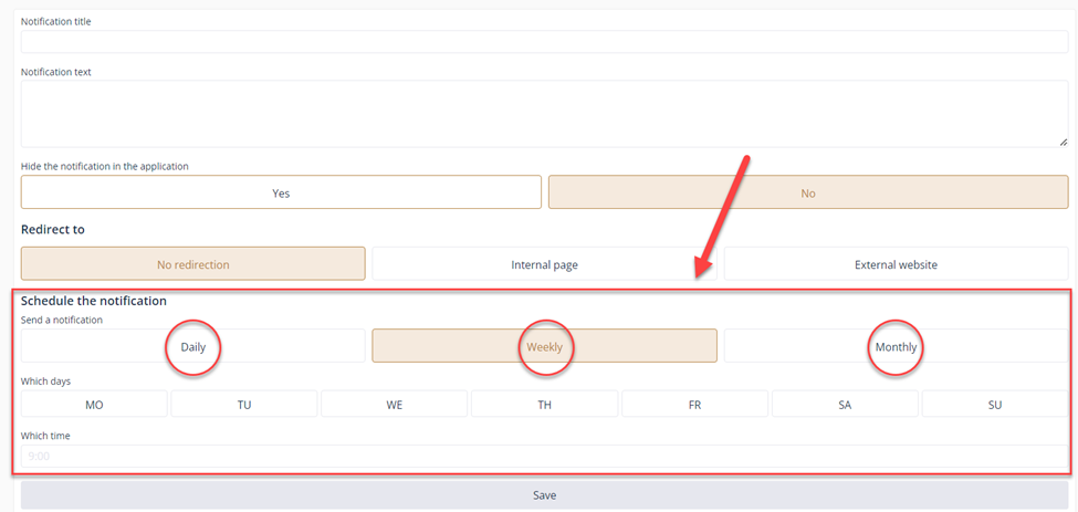 The last one is Recurring Notifications, it will allow you to send notifications on a daily, weekly or monthly bases to your users.