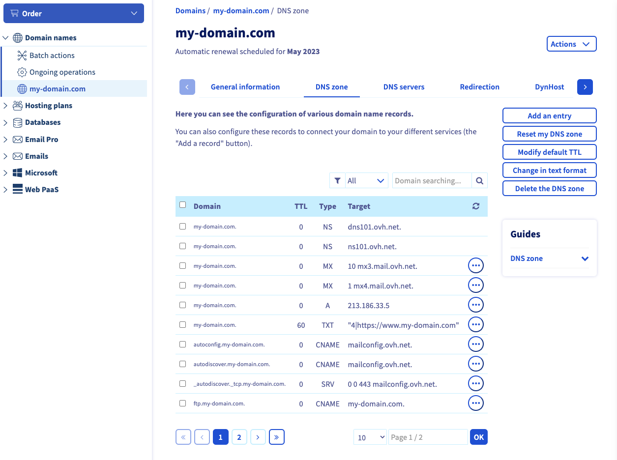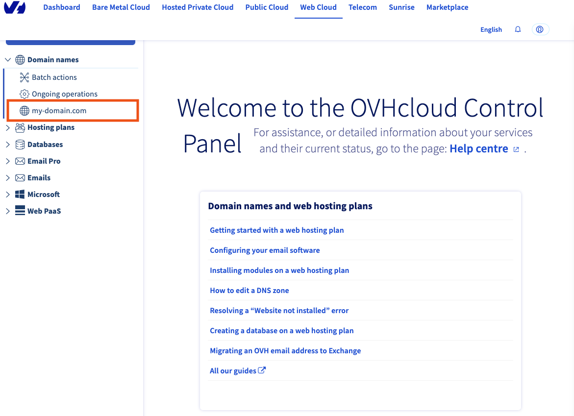 Select your domain name under the domain names category. Let's take as an example for this guide my-domain.com
