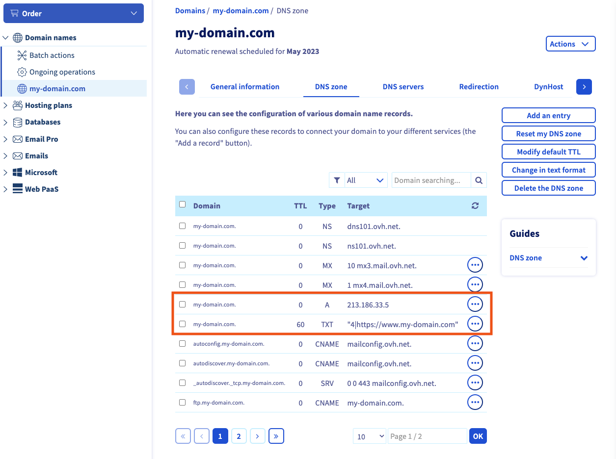 How to link your OVH domain name