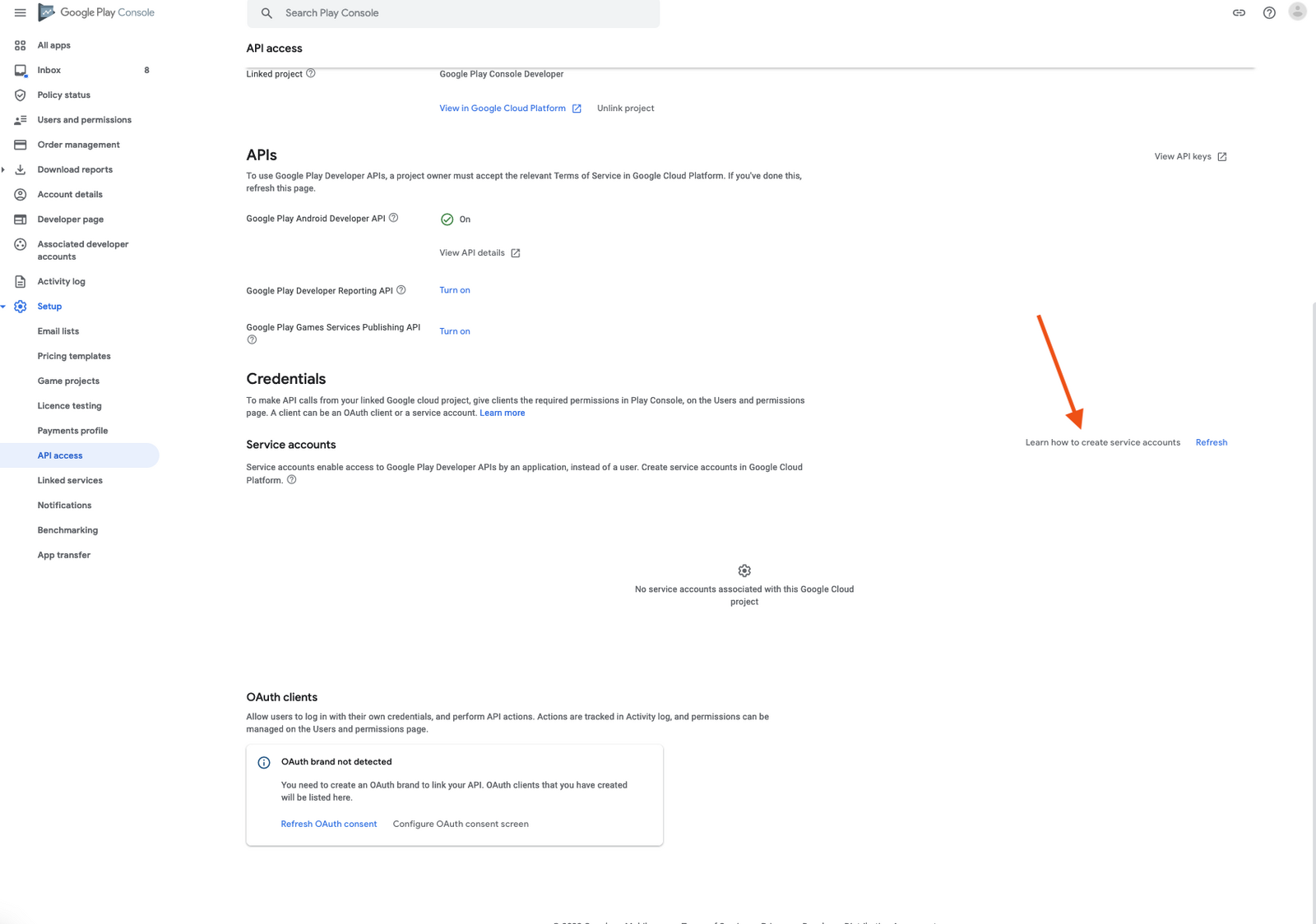 Click on Learn how to create service accounts button