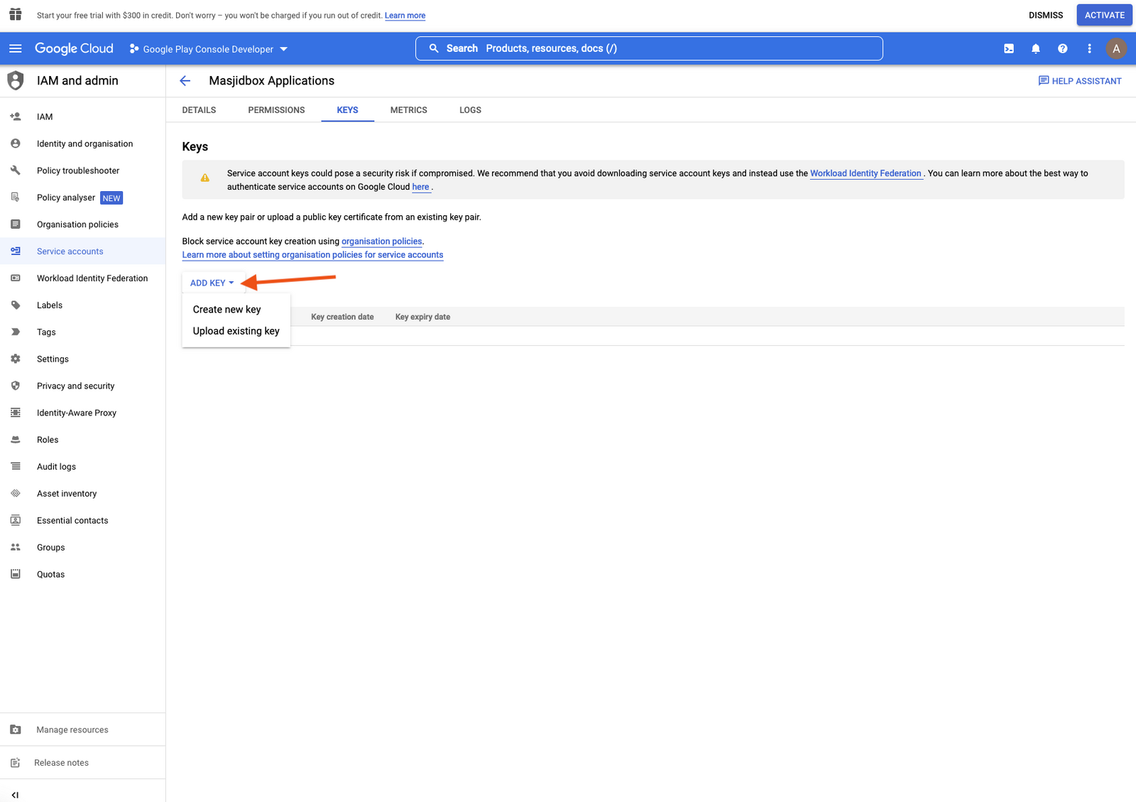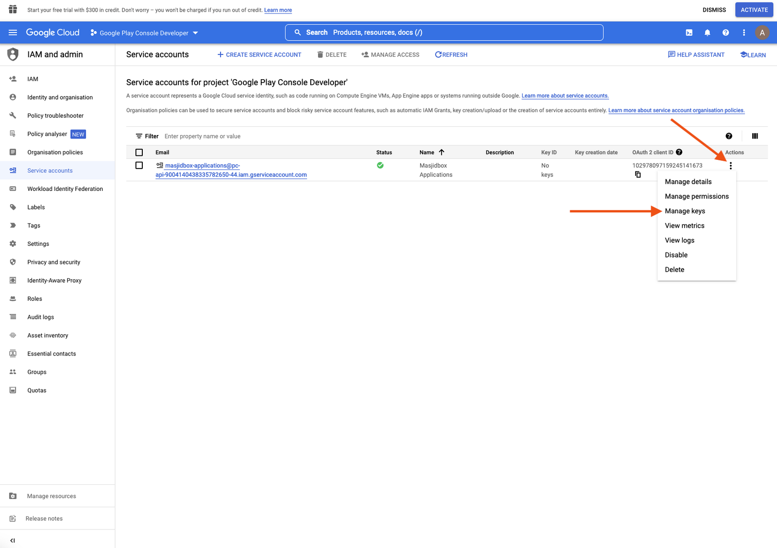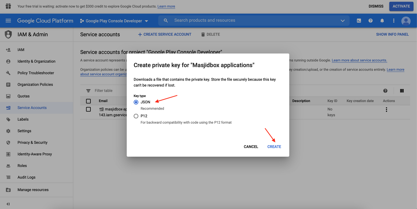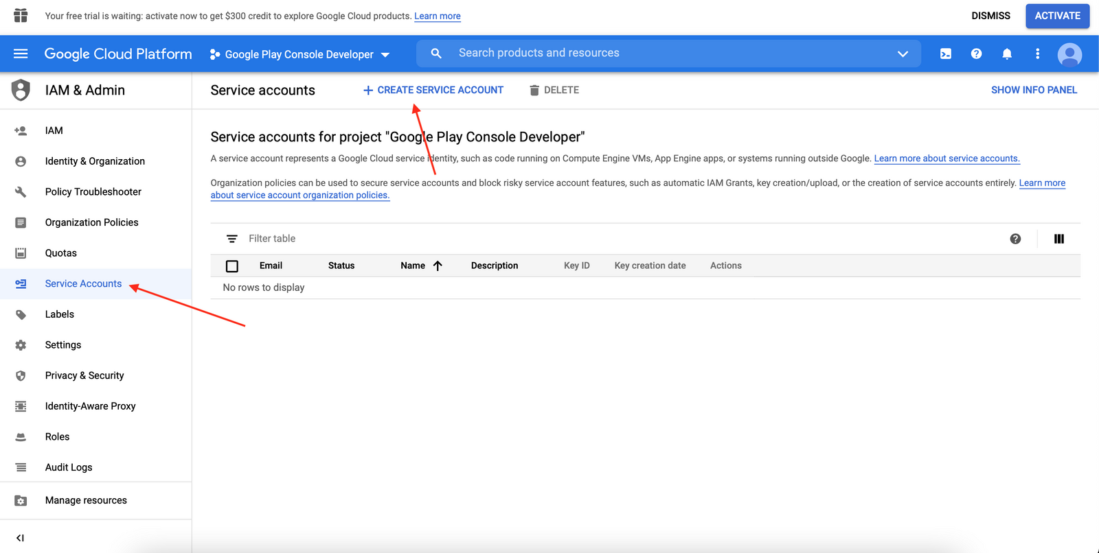 Step 3: Create your Android Service Account
