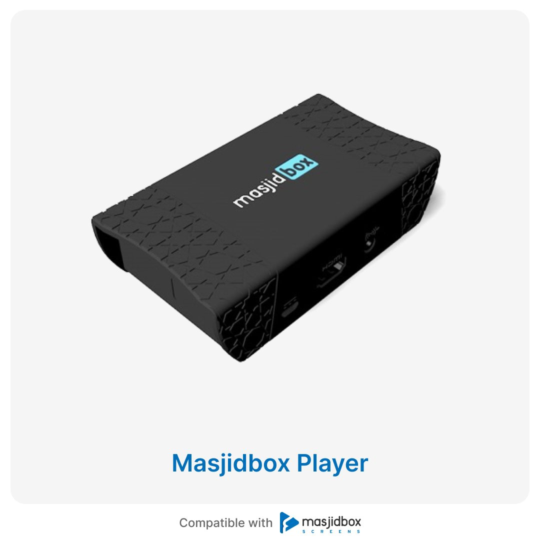 The Masjidbox Player offers a customizable experience and is ready to use right out of the box. Simply connect it to any TV with an HDMI port.