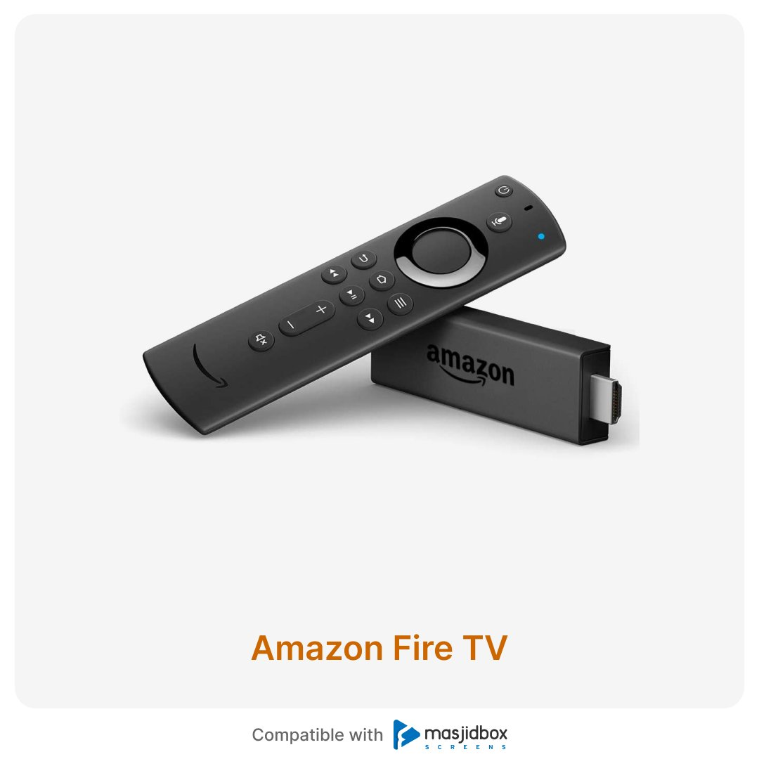 Download the Masjidbox Screens app from the Amazon App Store to use it with your Amazon Fire TV.