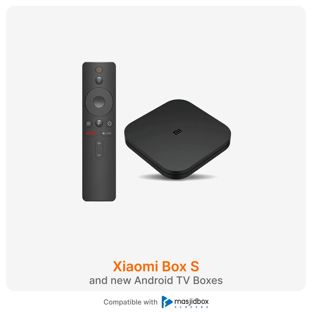 The Masjidbox Screens app is available for download from the Google Play Store and is compatible with various Android TV boxes, including the Xiaomi Box S and Nvidia Shield.